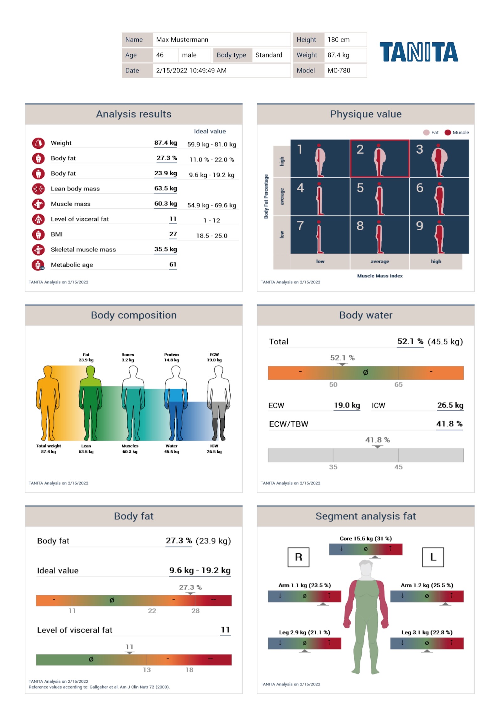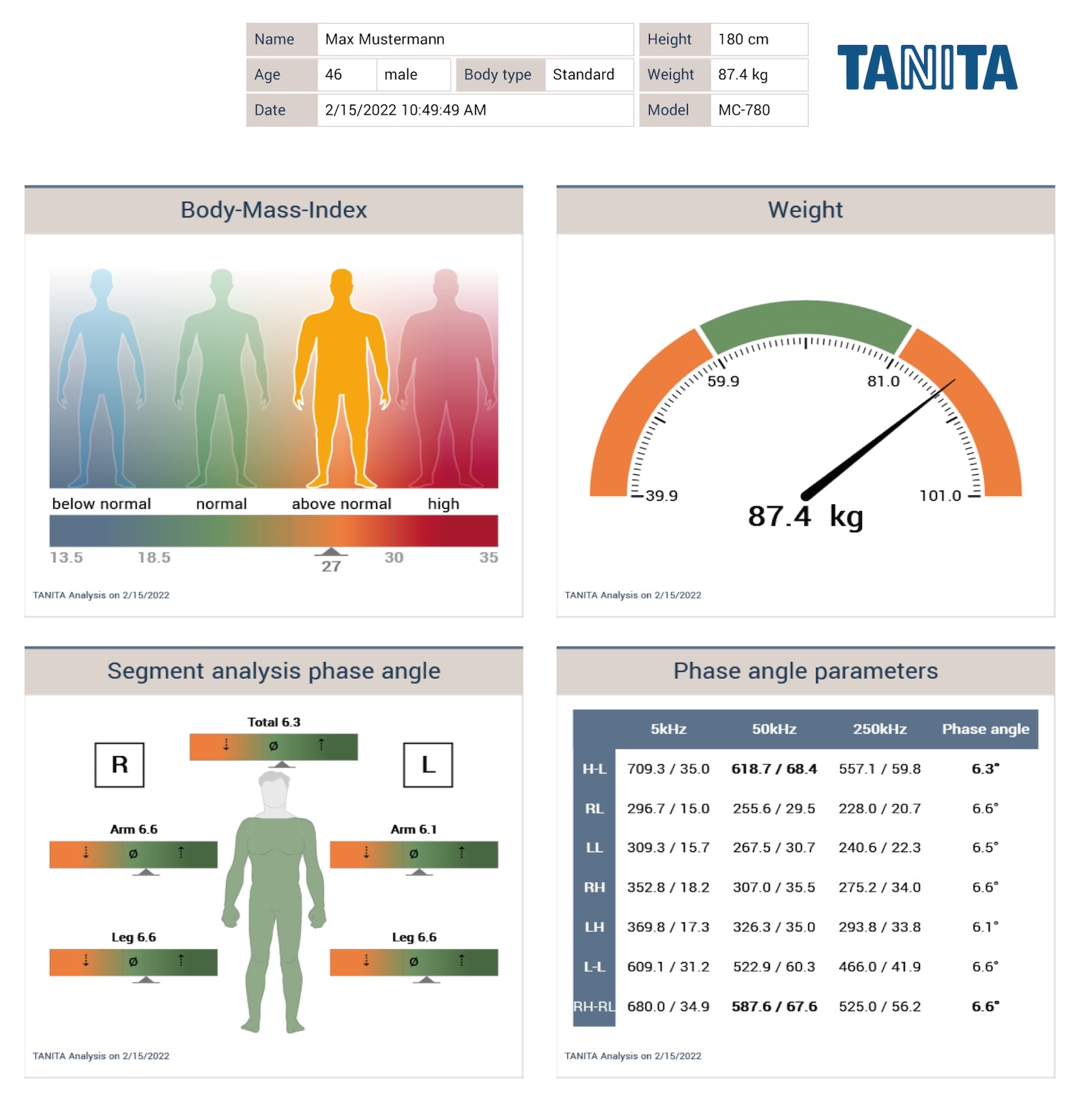 Die Messung selbst ist völlig unkompliziert: Sie stehen entspannt auf zwei Elektoden, wir geben Ihnen noch in jede Hand eine weitere und leiten einen ganz schwachen Strom durch den Körper. Nach wenigen Sekunden liegen die Daten vor, die wir anschließend individuell auswerten.